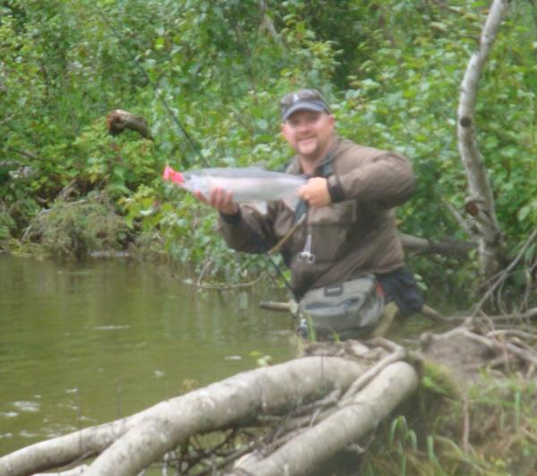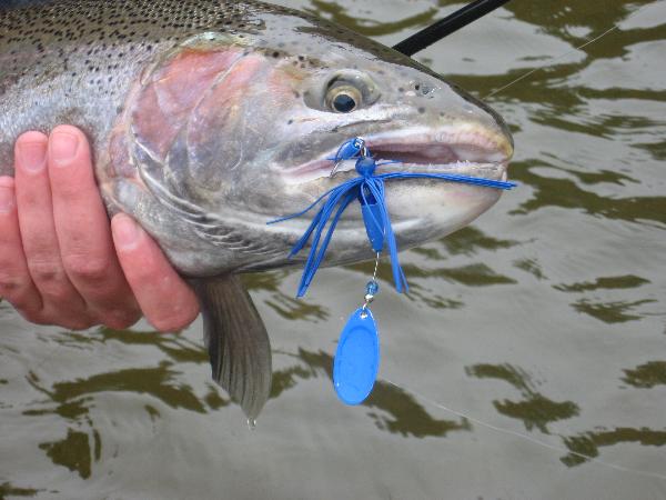 Second is my buddy Bobby. He had never caught a steelhead on a spinner before this trip! Pulled two under my nose on All Blue. We did 8 in one day, all on Arctics, and were the only ones catching fish on both sides of the river that day.